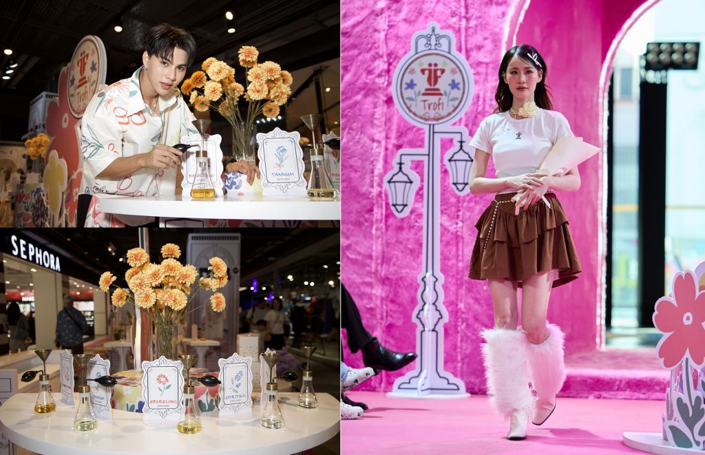 สำหรับ TROFI FLOWER LOVE COLLECTION คอลเลคชั่นต้อนรับเดือนแห่งความรัก นอกจากเปิดตัวด้วยแฟชั่นโชว์สุดหวานแล้ว TROFI ยังสร้างสรรค์ pop up ในคอนเซปต์ที่ชวนให้นึกถึง Champs-Élysées ในปารีส เมืองแห่งความโรแมนติกและกรุ่นกลิ่นแห่งความรัก พาทุกคนก้าวเข้าสู่ภาพฝันที่สวยงามในบรรยากาศของร้านดอกไม้ในกรุงปารีส ทั้งยังหอมละมุนไปกับ Diffuser สินค้าใหม่ล่าสุดของแบรนด์ เปิดตัวเป็นครั้งแรกที่สยามเซ็นเตอร์ ซึ่งทางแบรนด์ได้นำเข้าวัตถุดิบของแท้จากฝรั่งเศส และยังมี เสื้อผ้า สินค้าที่ระลึก อีกหลายรายการ ที่ลวดลายบนสินค้าได้แรงบันดาลใจมาจากดอกไม้แต่ละชนิดที่เป็นวัตถุดิบในการทำ Diffuser ทั้ง 5 กลิ่น