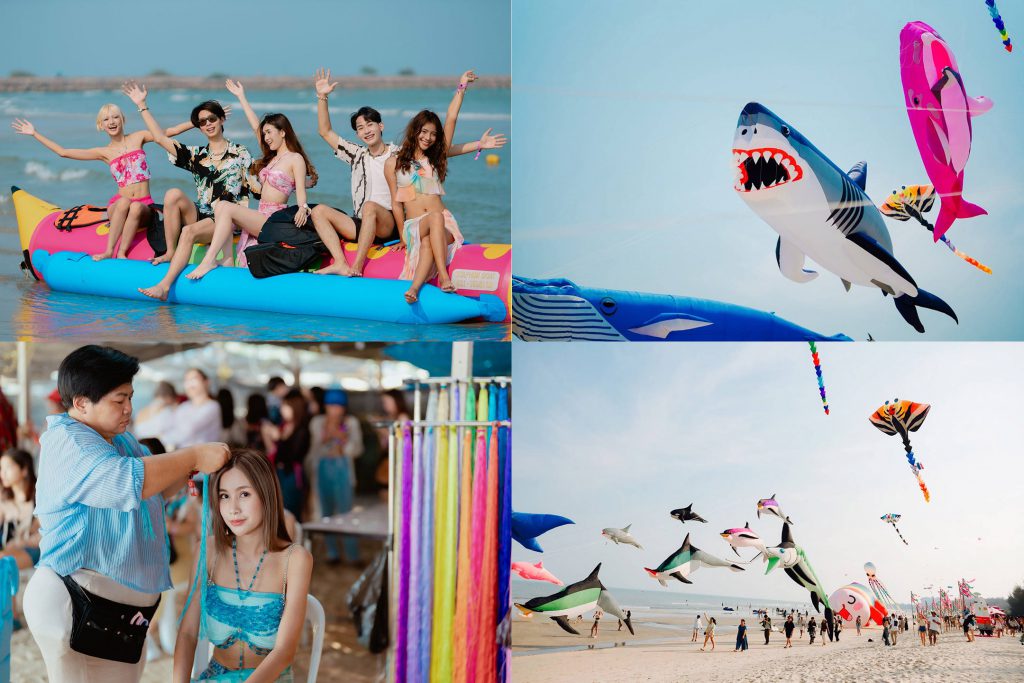 บรรยากาศชายหาดสุดคึกคักตั้งแต่บ่ายโมง สาย BEACH LIFESTYLE ทยอยเดินทางมาที่งานตามธีม บิกินี่บีชแซ่บที่สุด ทำให้แสงแดดซัมเมอร์นี้ที่ว่าแรง รู้สึกเบาไปเลยทีเดียว และทันทีที่เข้าไปภายในงาน ได้พบการเนรมิตพื้นที่ทั้งหาดด้วยสีเขียวและสีชมพู ชวนถ่ายรูปตลอดทุกมุม โดยเฉพาะจุดแลนด์มาร์คของงาน ที่ได้แรงบันดาลใจงานดีไซน์มาจาก Lifeguard และเสริมบรรยากาศงานด้วย FANCY KITE (แฟนซี ไคท์) ว่าวแฟนซีหลากหลายรูปทรงที่ถูกออกแบบแต่งแต้มท้องฟ้าให้ได้ครีเอทท่าถ่ายรูปไม่ซ้ำใคร พร้อมด้วยบูทดีเจ