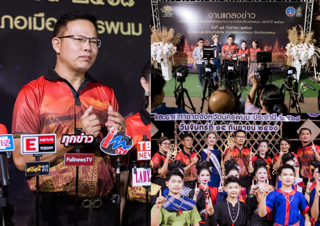 นายปราชญา อุ่นเพชรวรากร ผู้ว่าราชการจังหวัดนครพนม เป็นประธาน พร้อมด้วย นางธนวัน อุ่นเพชรวรากร นายกเหล่ากาชาดจังหวัดนครพนม, นางยุวดี มีบุญ วัฒนธรรมจังหวัดนครพนม, นางสาวเสาวนีย์ คนกล้า ผู้อำนวยการการท่องเที่ยวแห่งประเทศไทย สำนักงานนครพนม, นายอนุชิต หงษาดี นายกองค์การบริหารส่วนจังหวัดนครพนม, ายนิวัต เจียวิริยบุญญา นายกเทศมนตรีเมืองนครพนม และ พ.ต.อ.อนุสรณ์ มั่งมี รองผู้บังคับการตำรวจภูธรจังหวัดนครพนม ร่วมแถลงข่าว บริเวณซุ้มวิถีคนทำเรือไฟอำเภอเมืองนครพนม ริมฝั่งโขง ตำบลในเมือง อำเภอเมืองนครพนม จังหวัดนครพนม ในการเตรียมความพร้อมการจัดงานประเพณีไหลเรือไฟและงานกาชาดจังหวัดนครพนม ประจำปี 2568 ด้านการจัดกิจกรรม, การรักษาความปลอดภัย, การจราจร, สถานที่พัก และการอำนวยความสะดวกในด้านต่างๆ ที่จะมีขึ้น เพื่อรองรับนักท่องเที่ยวที่จะเดินทางมาเยือนจังหวัดนครพนม ในช่วงวันออกพรรษา ระหว่างวันที่ 27 กันยายน-8 ตุลาคม 2568