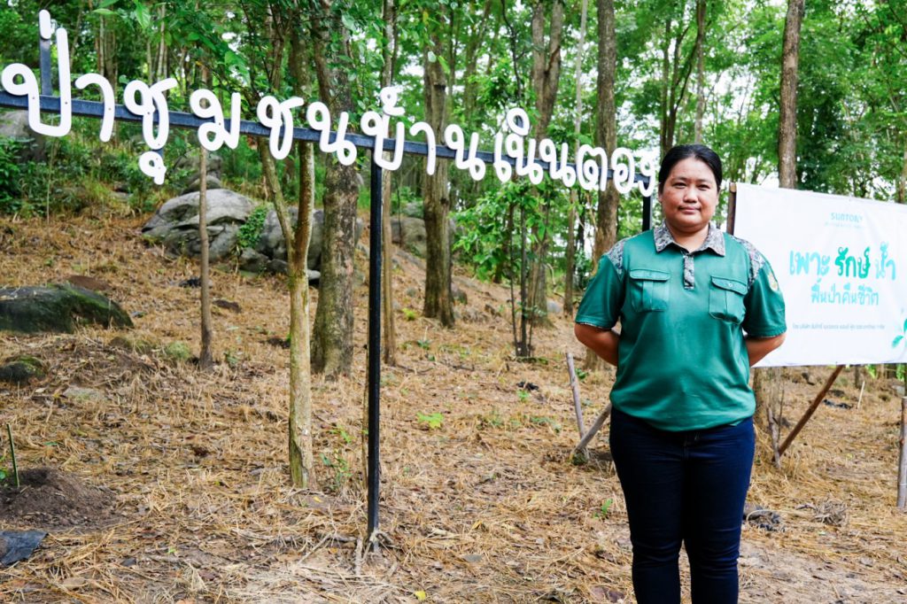 นางสาวกิ่งดาว จีนหนู เจ้าหน้าที่ศูนย์ป่าไม้ชลบุรี สำนักจัดการทรัพยากรป่าไม้ที่ 9 จังหวัดชลบุรี กล่าวว่า “ป่าชุมชนบ้านเนินตองมีพื้นที่กว่า 24 ไร่ เปรียบเสมือนหัวใจของชุมชนในพื้นที่แห่งนี้ ขอขอบคุณ ซันโทรี่ เบเวอเรจ แอนด์ ฟู้ด (ประเทศไทย) ที่ให้ความสำคัญกับการร่วมมือกับภาครัฐและชุมชนในการดูแลป่าแห่งนี้ ด้วยการจัดโครงการ ‘เพาะรักษ์น้ำ ฟื้นป่าคืนชีวิต’ เพื่อถ่ายทอดความรู้ด้านการดูแลป่าอย่างยั่งยืนให้กับผู้ร่วมกิจกรรม รวมถึงยังได้เชิญชวนพนักงานจิตอาสา หน่วยงานราชการ ชุมชน และนักเรียนในพื้นที่ มามีส่วนร่วมในการฟื้นฟูป่าผืนนี้ด้วยกัน ผ่านกระบวนการดูแลป่าและต้นไม้แบบครบวงจร 4 ขั้นตอน ประกอบด้วย การปลูกต้นกล้าใหม่ในพื้นที่ฟื้นฟู การซ่อมแซมโดยกำจัดวัชพืชและปักหลักไม้เพื่อดูแลต้นไม้เดิมให้แข็งแรง การคลุมฟางรอบโคนเพื่อรักษาความชื้นของดินและลดวัชพืชใหม่ และการรดน้ำทั้งต้นไม้เดิมและต้นกล้าที่ปลูกใหม่ เรียกได้ว่า โครงการนี้ไม่เพียงช่วยเพิ่มพื้นที่สีเขียว แต่ยังให้องค์ความรู้และแนวปฏิบัติที่ถูกต้อง ตลอดจนปลูกจิตสำนึกด้านการอนุรักษ์สิ่งแวดล้อมให้กับเยาวชนรุ่นใหม่และคนในพื้นที่อีกด้วย”