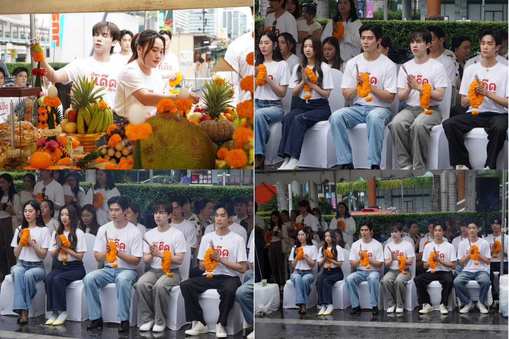 โดยมีผู้บริหารอย่าง คุณตรีรัก บุญเจริญ, คุณสไปร์–ศมน ศักดิวงศ์ นำทีมนักแสดงนำแบบครบทีม ฟลุ๊ค-ภูสิษฐ์ ดิษฐพิสิษฐ์, แสงเหนือ-จิตบุณย์ งามบุณยรักษ์, นานะ-รมิตา คามิยา, เม-เมธกานต์ เอนกธนะสุวรรณ, ซีซ่าร์-ภูดิส กันนะพันธุ์, เฟย-ดีเฟ่ย ซ่าน, แก๊ป-จักริน ภูริพัฒน์ และยังมีทีมนักแสดงสมทบคุณภาพ พร้อมด้วยผู้กำกับ ไรซ์-ณฐิฏ กวีกรณ์วงศ์ และทีมโปรดักชั่นจาก บริษัท สตูดิโอ วาบิ ซาบิ จำกัด มาร่วมพิธีอย่างพร้อมเพรียง ทำพิธีบวงสรวงเพื่อความเป็นสิริมงคล ก่อนเดินหน้าถ่ายทำบรรยากาศในงานเป็นไปอย่างคึกคักและเปี่ยมด้วยพลัง แม้จะมีสายฝนโปรยปรายลงมาอย่างชุ่มฉ่ำตลอดช่วงพิธี แต่กลับยิ่งเสริมความขลังและเป็นสัญญาณที่ดีตามความเชื่อของผู้จัดฯ ว่าซีรีส์เรื่องนี้จะประสบความสำเร็จและได้รับความนิยมอย่างล้นหลาม