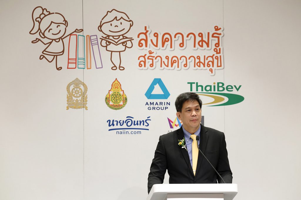 ด้าน คุณโสภณ ราชรักษา รองกรรมการผู้อำนวยการใหญ่ บริษัท ไทยเบฟเวอเรจ จำกัด (มหาชน) เผยว่า “โครงการ “ส่งความรู้ สร้างความสุข” ได้ดำเนินการอย่างต่อเนื่อง ไทยเบฟฯ มีความมุ่งมั่นและตระหนักถึงความสำคัญเรื่องการส่งเสริมด้านการศึกษาให้กับเยาวชน โดยเล็งเห็นถึงความสำคัญของการอ่าน เป็นจุดเริ่มต้นของการพัฒนาการเรียนรู้ของเยาวชน เพราะการอ่านคือรากฐานสำคัญ ของการเสริมสร้างและพัฒนาทักษะความรู้ความสามารถของเยาวชนในการดำรงชีวิต เป็นการเปิดโลกทัศน์ สร้างจินตนาการ อีกทั้งทำให้มีโอกาสเข้าถึงข้อมูลและแนวคิดใหม่ๆ ที่ช่วยต่อยอดทั้งในด้านความรู้ ความคิด และก้าวทันสถานการณ์โลกที่เปลี่ยนแปลงตลอดเวลา กิจกรรมต่างๆ ของโครงการส่งความรู้ สร้างความสุข ยังช่วยสร้างแรงบันดาลใจให้เด็กๆ รู้สึกสนุกและรักการอ่านมากยิ่งขึ้น