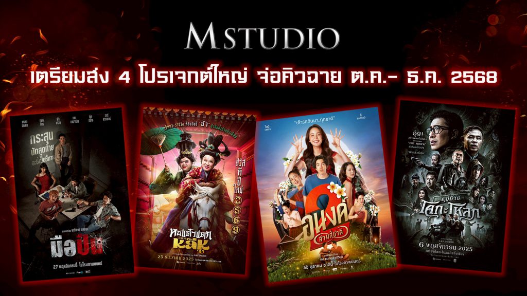 หลังจาก “ธี่หยด 3” ทำรายได้ทะลุเป้าในเวลาอันรวดเร็ว M STUDIO พร้อมเดินหน้าสู่โปรแกรมหนังไตรมาส 4 ด้วย 4 ภาพยนตร์ไทยหลากรส ที่เตรียมจ่อคิวเข้าฉายในเดือนตุลาคมถึงธันวาคมนี้ เพื่อสร้างความต่อเนื่องของรายได้และความจดจำในแบรนด์ “M STUDIO” ตลอดช่วงปลายปี ได้แก่